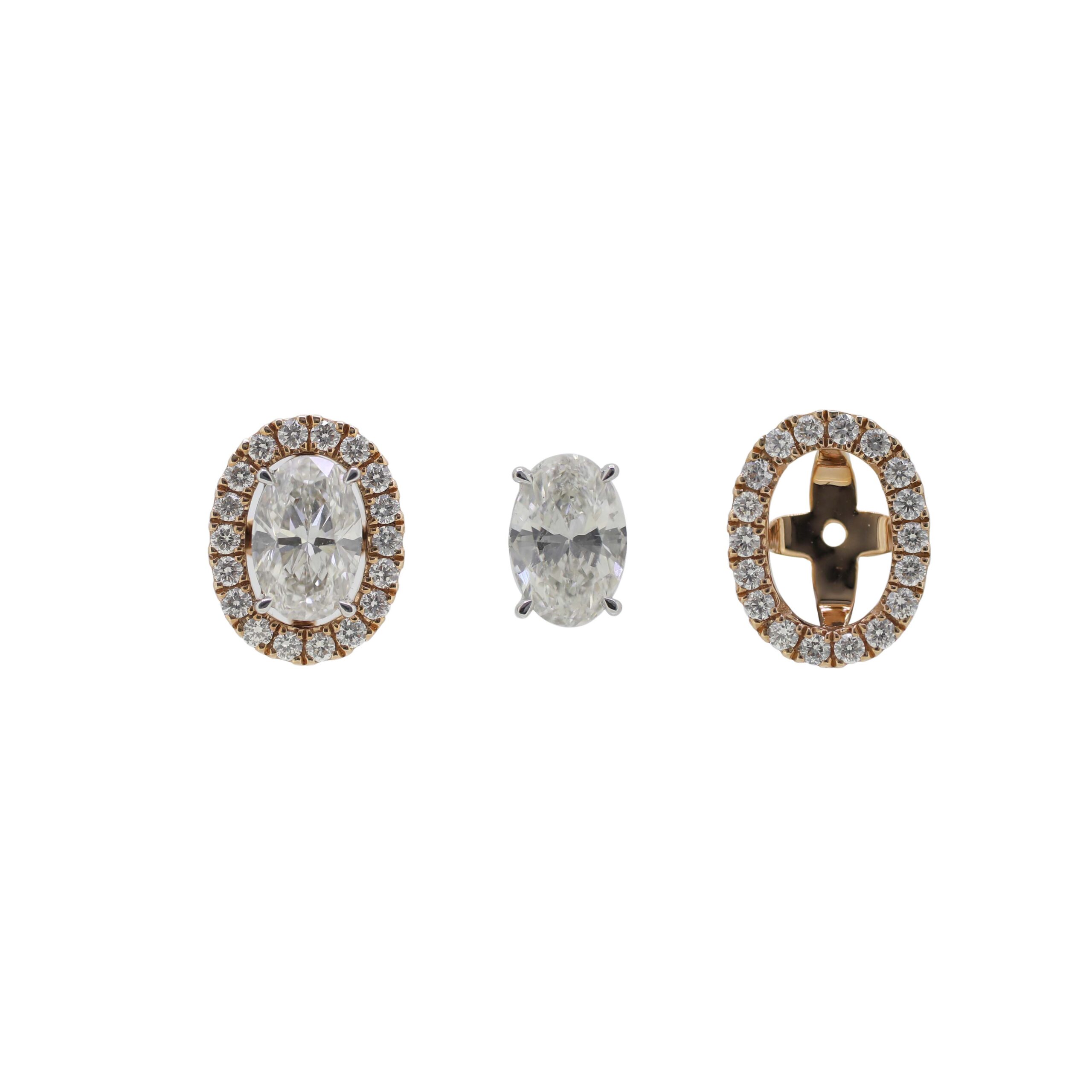 18K White and Rose Gold Oval Diamond Earrings with Jacket S30661 數量