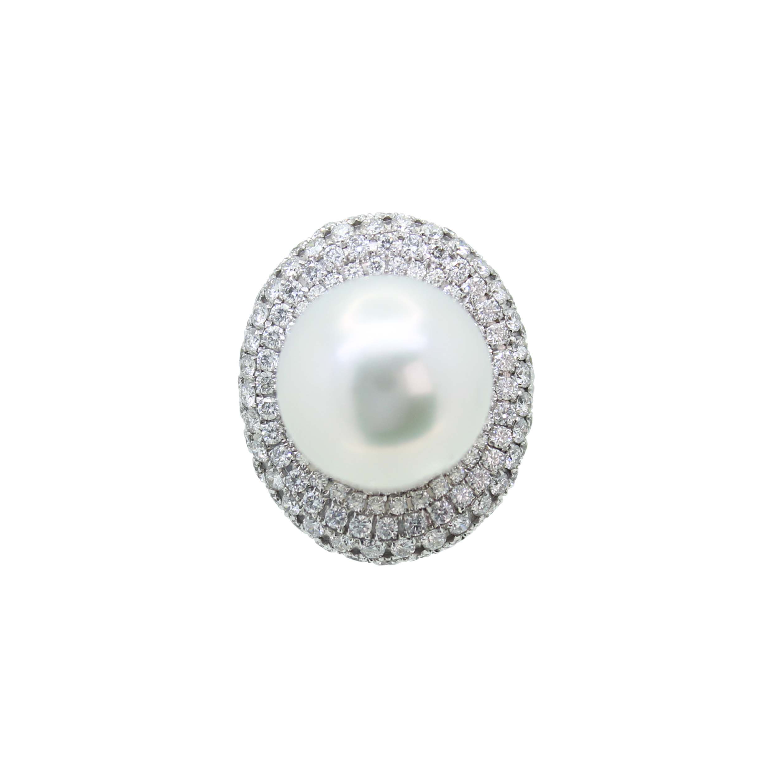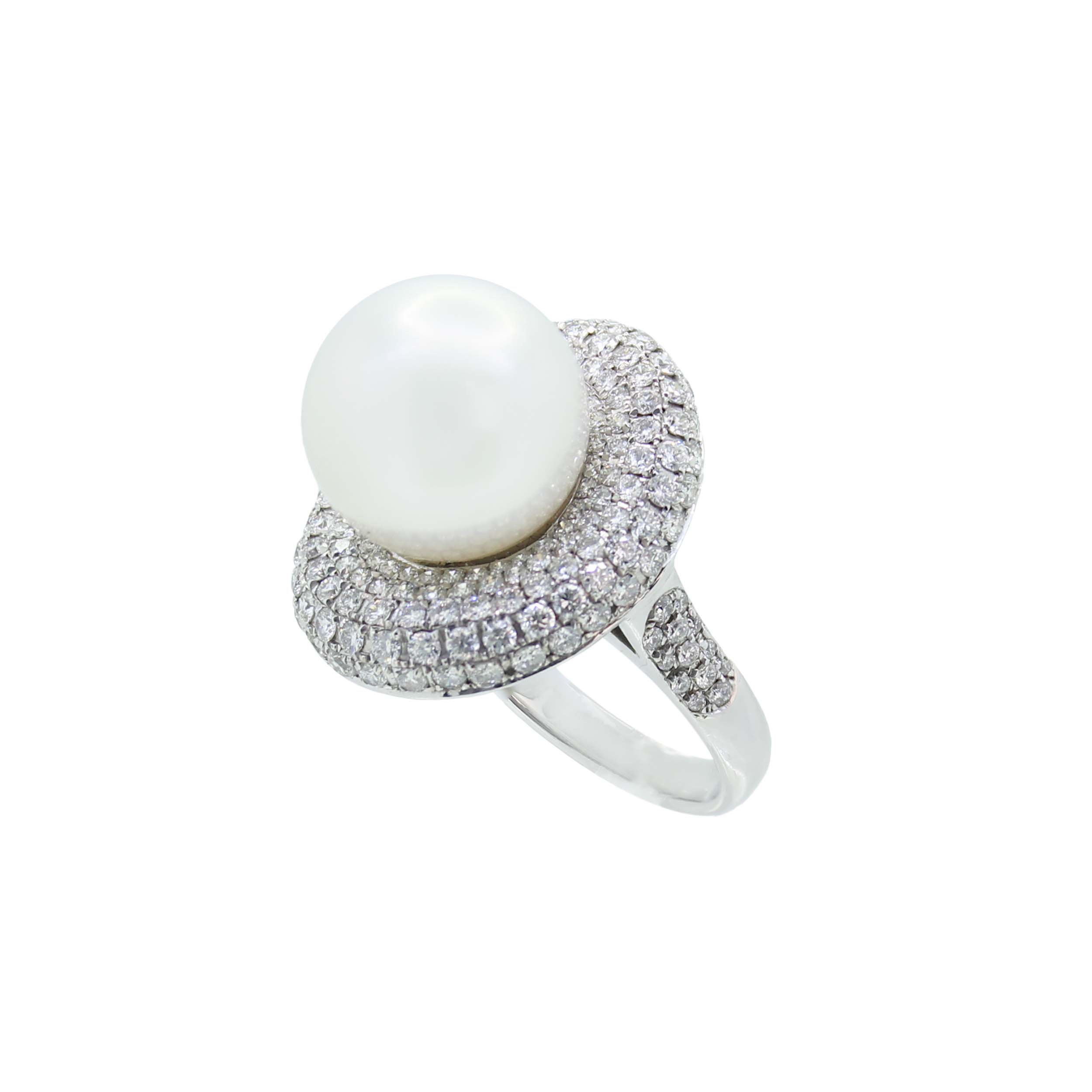 18K 白色黃金天然鑽石和南洋珍珠戒指 S25486